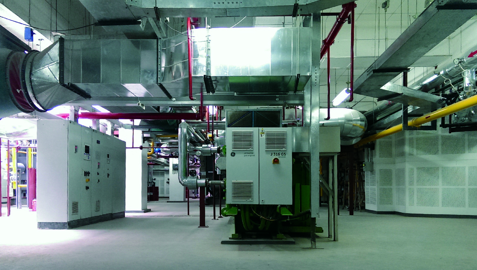 2x834kW發(fā)電機,2x1454kW煙氣熱水直燃機,2x2.91MW燃氣真空鍋爐,3x1257kW電制冷機組